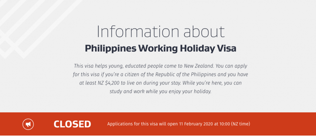 Philippines Working Holiday Visa OPEN DATE [2020.02.11]